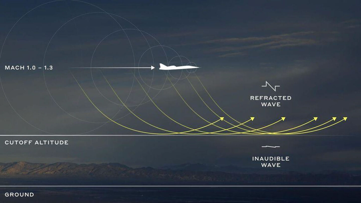 Boomless Cruise is based on a well-known physics concept called Mach cutoff, in which a sonic boom refracts in the atmosphere and never reaches the ground. XB-1 achieved this effect by flying at a high enough altitude at specific speeds, based on atmospheric conditions.